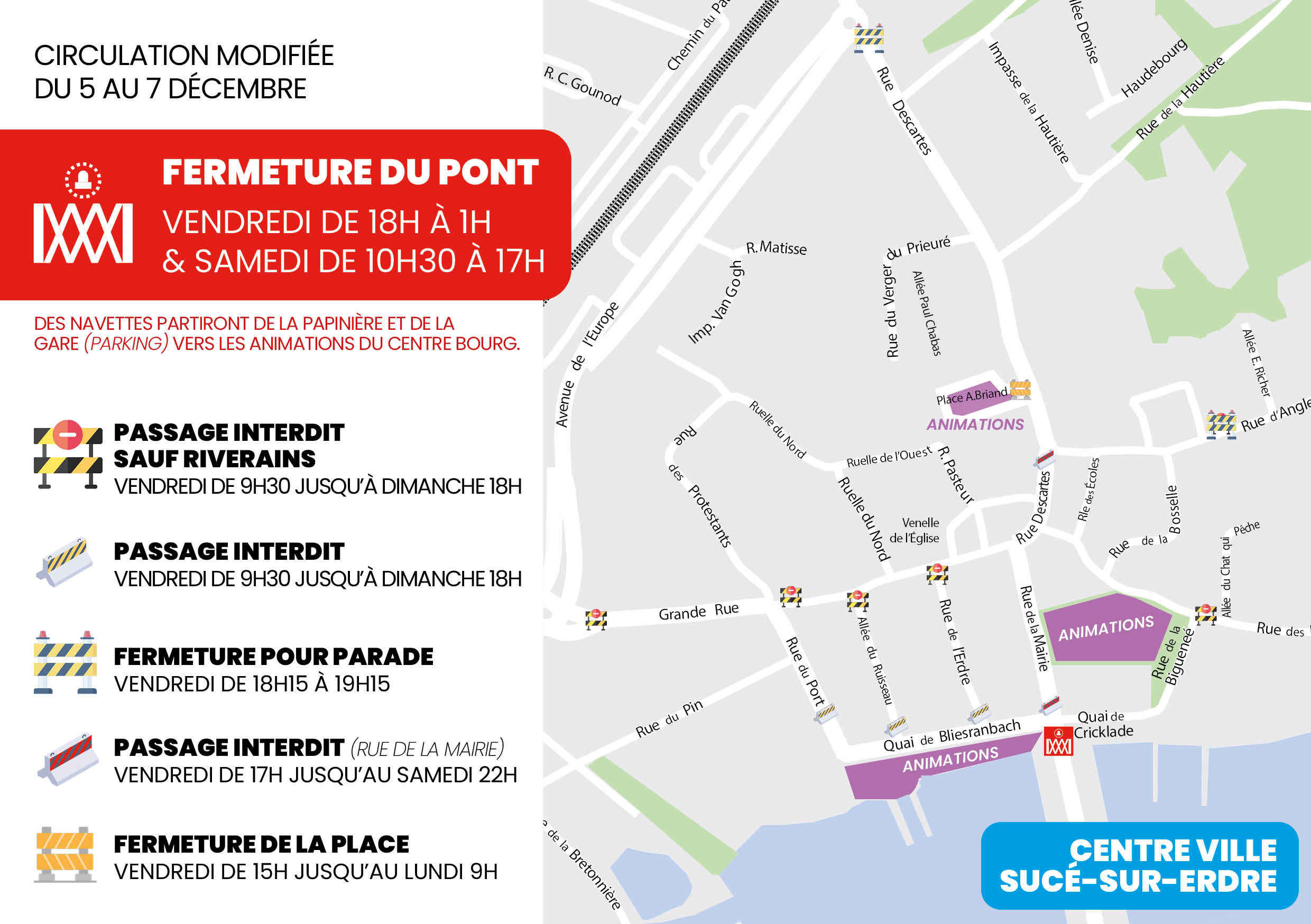 Au cœur du port de Sucé-sur-Erdre, site emblématique de la commune, les festivités s’annoncent spectaculaires les 5 et 6 décembre prochains, découvrez un échantillon de la programmation :