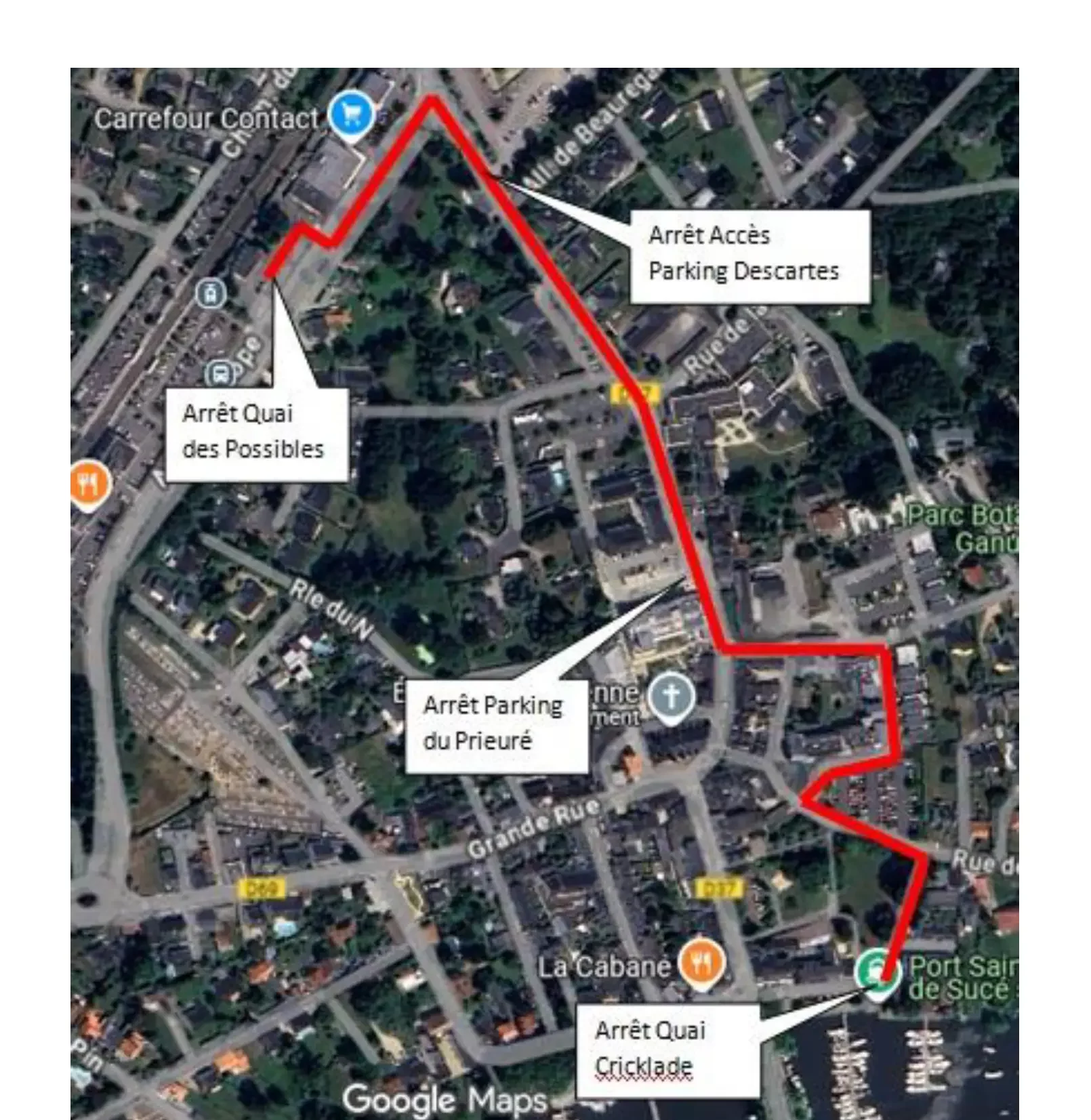 Circuit 1 Départ/Arrivée : Parking du Quai des Possibles (Bd de l’Europe) ↔ Quai Criklade Arrêts intermédiaires : Parking de l’école Descartes & Parking du Prieuré